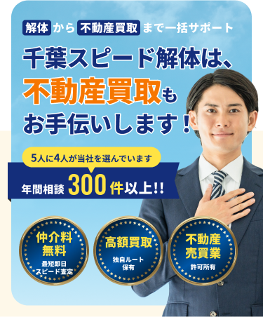 「すぐに空き家を現金化したい」「売却を急いでいる」、そんなお客様のために、当社ではスピーディーな査定と買取を強みとしています。解体が必要な物件や、築年数が古く買い手が見つかりにくい物件でも、当社の不動産部門と解体部門が連携することで、スムーズな買取が可能です。他社で断られた物件でも、まずはお気軽にご相談ください。
